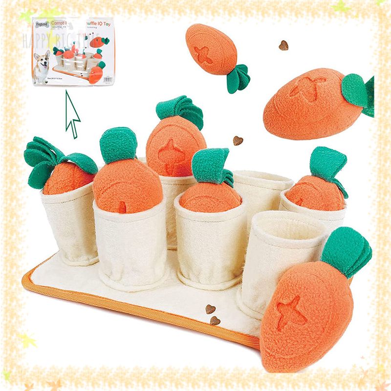 SPECIFICATIONSOrigin: CNMaterial: FleeceFeatures1.With multiple pockets on each carrot toy2.Can hide pet foods or treats inside the pocket and the carrot holes3.With squeakers inside each carrot to increase fun for your dogs to play with hours